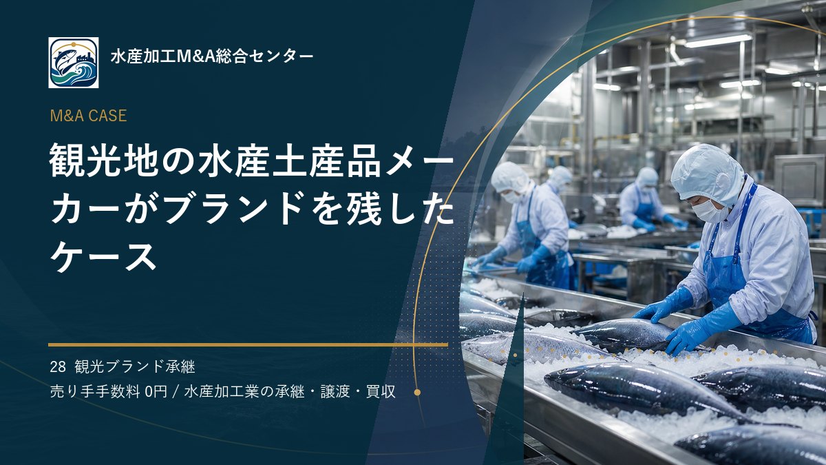 本事例では、水産土産品メーカーの観光ブランド承継をテーマに、売り手企業が早い段階で整理しておきたい実務上の論点をまとめます。水産加工業は、原料調達、衛生管理、冷凍・冷蔵設備、熟練人材、地域の取引関係が一体となって価値をつくる業種です。決算書の数字だけでは伝わらない強みをどう言語化し、買い手候補である観光事業会社へどう届けるかが、納得感のあるM&Aの出発点になります。