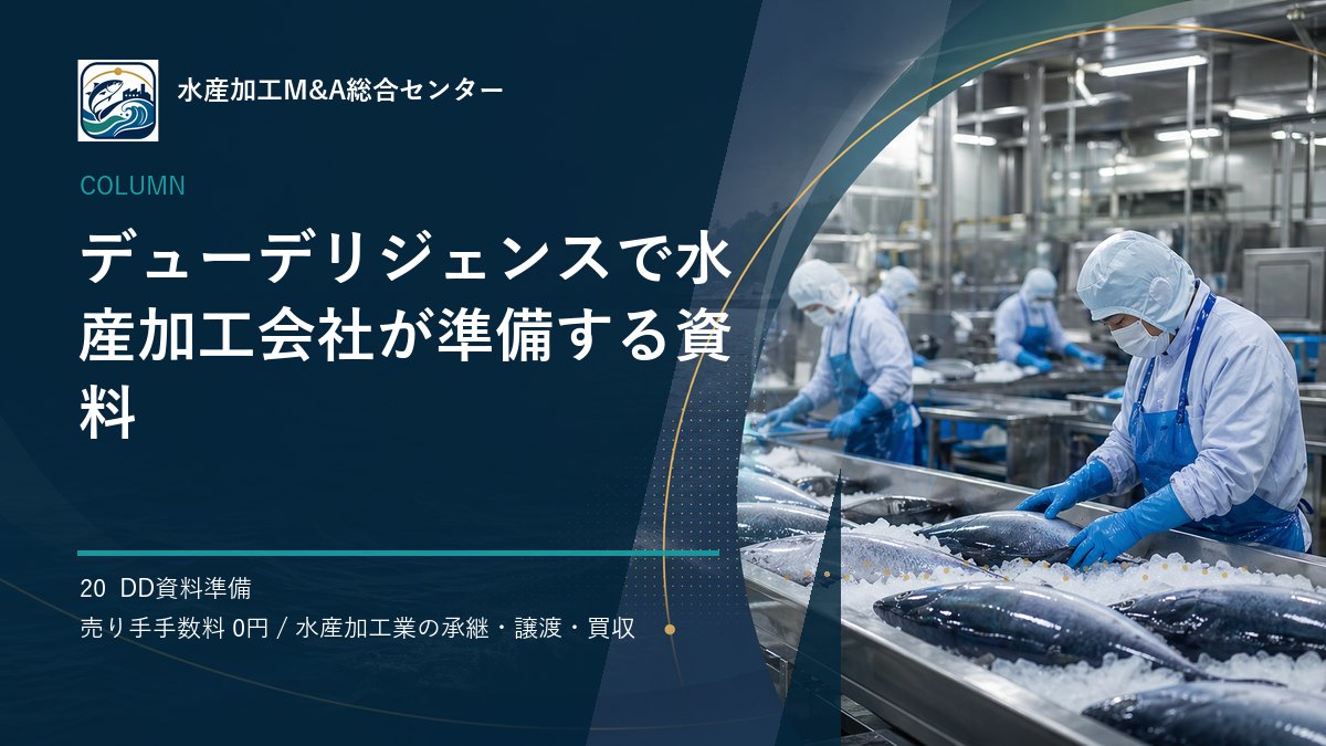 この記事では、譲渡準備中の会社のDD資料準備をテーマに、売り手企業が早い段階で整理しておきたい実務上の論点をまとめます。水産加工業は、原料調達、衛生管理、冷凍・冷蔵設備、熟練人材、地域の取引関係が一体となって価値をつくる業種です。決算書の数字だけでは伝わらない強みをどう言語化し、買い手候補である買収検討企業へどう届けるかが、納得感のあるM&Aの出発点になります。